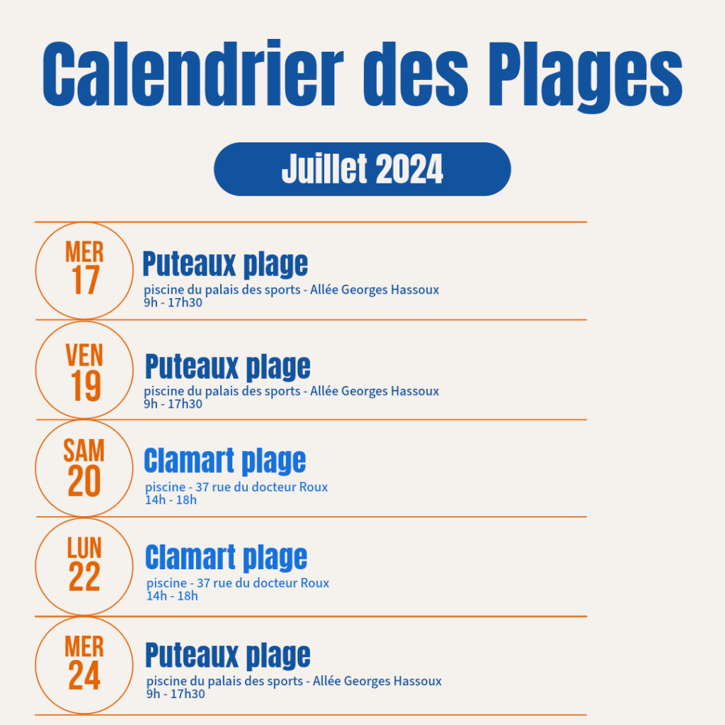 La prévention sur les Plages Évènement de Nanterre, Puteaux et Clamart 🗓️ juillet 2024 Les rendez-vous Prévention de l’étéLesPlagesDans la ville de Clamar, de Puteaux ou de Nanterre, les plages reviennent pour une édition sous le signe de la prévention solaire et de l’actiité physique en écho aux JeuxOlympiquesdeParis2024 durant les mois de juillet et d’août.Avec […]