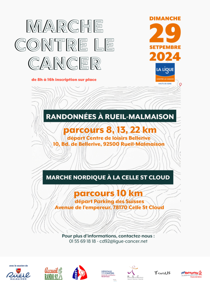 “Marche contre le cancer” Événement extérieur 🗓️ 29 septembre 2024 📍Centre de Loisirs Bellerive10, boulevard de Bellerive- 92500 Rueil-Malmaison 📍Parking des Suissesavenue de l’Empereur, 78170 Celle-Saint-Cloud ⏰ 8h à 16h La 21è édition de la « Marche contre le cancer » aura lieu le 29 septembre 2024 dans les communes de Rueil-Malmaison et de la […]