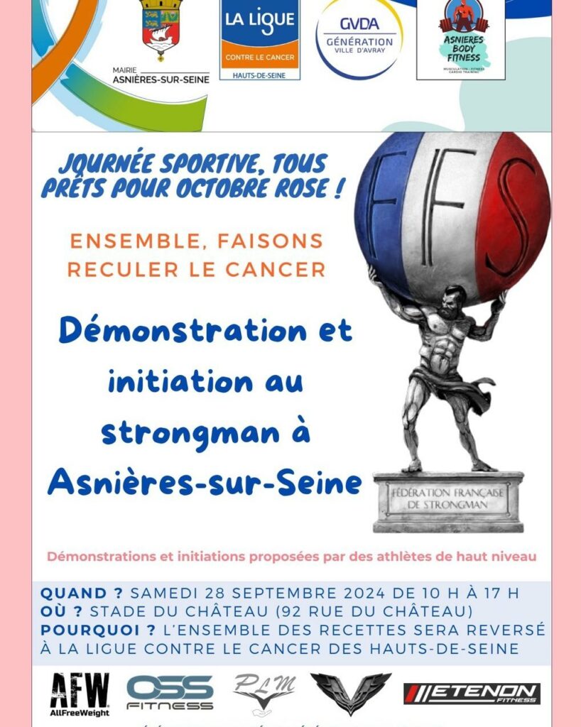 Démmonstration de strongman Évènement avec la ville d’Asnières-sur-Seine 🗓️ 28 septembre 2024 📍Stade du château 92 rue du château, 92004 Asnières-sur-Seine ⏰ de 10h à 17h Pour les personnes touchées par la maladie, le sport joue un rôle clé dans leur parcours de soins. Ce w.end, le sport, et notamment le Strongman, se mobilise […]