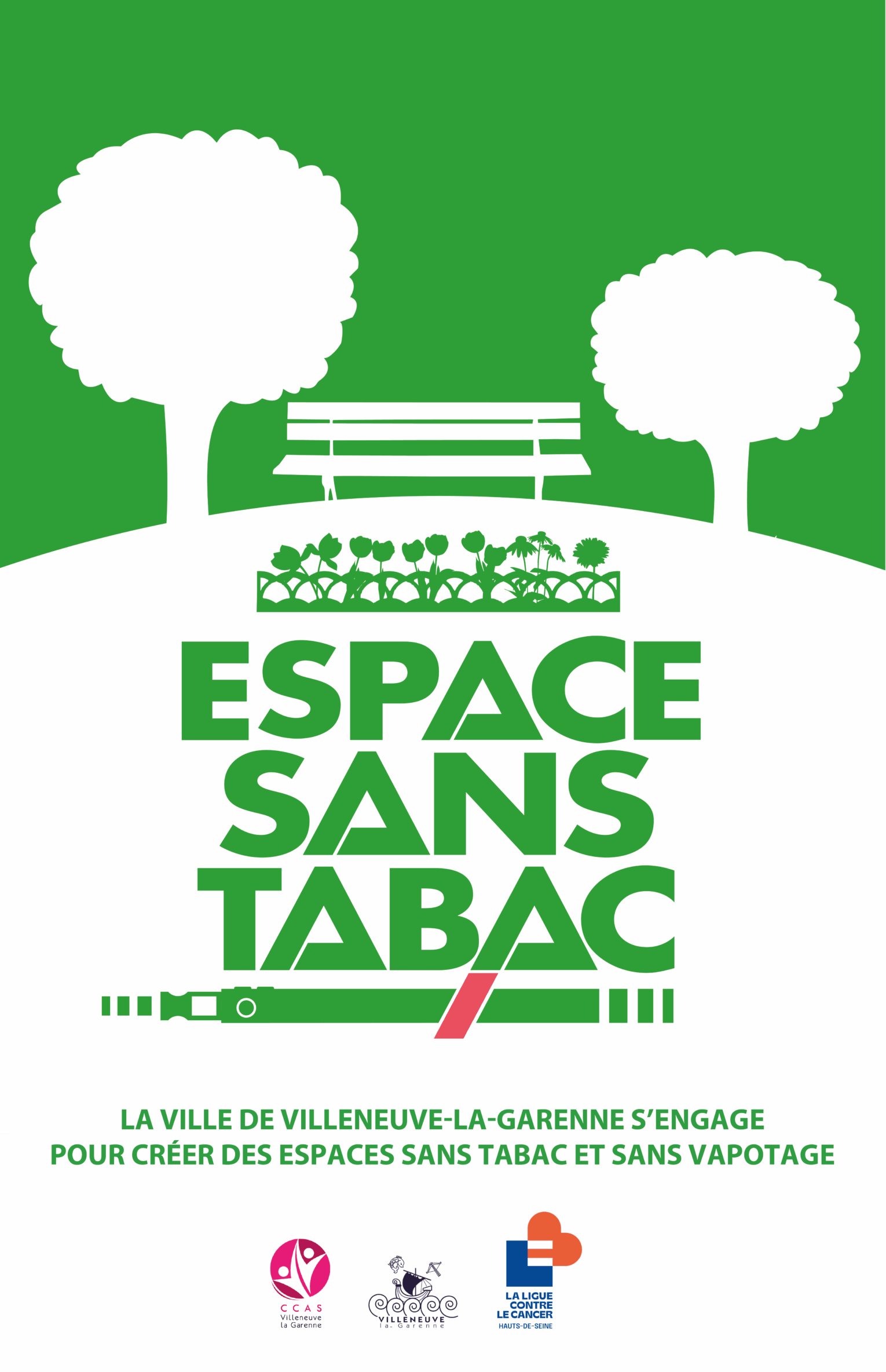 Dans le cadre de la lutte contre le tabagisme, nous tenons à féliciter la commune de Villeneuve-la-Garenne avec qui nous allons inaugurer de nouveaux espaces sans tabac sur le territoire communal.
